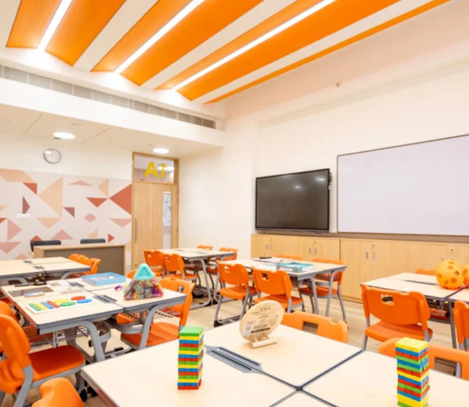 At RPGIS, the Primary campus is built to nurture young minds in a safe, inspiring, and technology-rich environment. The classrooms are spacious, air-conditioned, and designed for collaborative learning, with special AV rooms, open-air classrooms, sensory walls, and creative breakout spaces that support curiosity and exploratory play. Separate libraries for Primary children ensure age-appropriate resources, while facilities such as the Makers Space and Innovators Lab allow hands-on learning in robotics, design & technology.