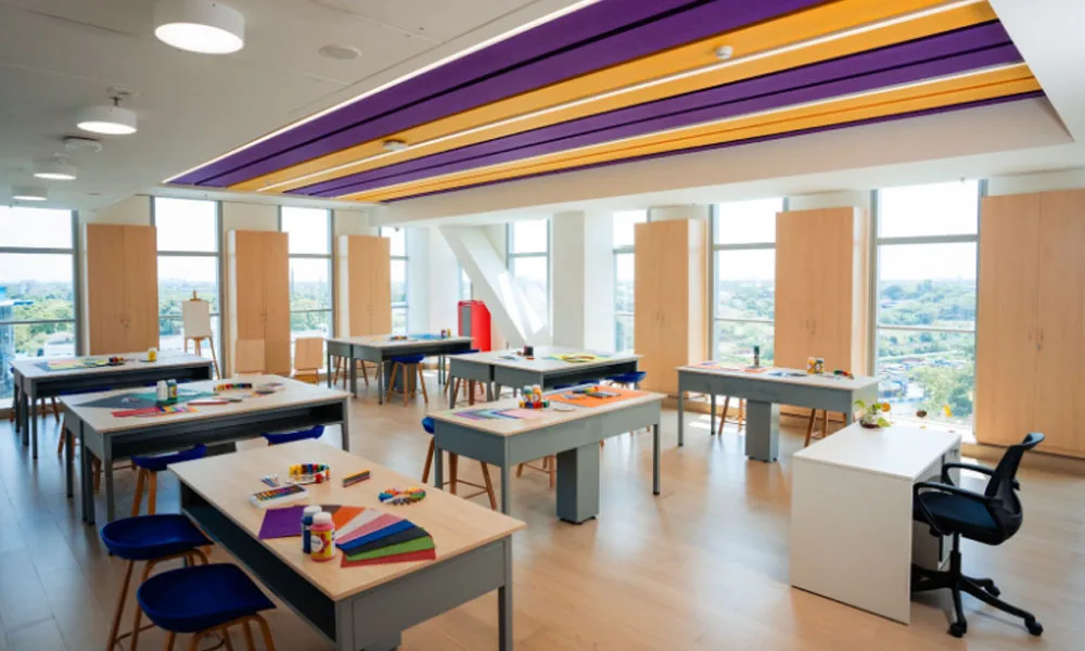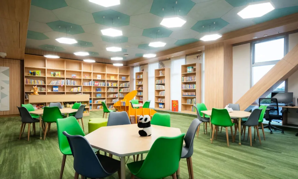 At RPGIS, the Primary campus is built to nurture young minds in a safe, inspiring, and technology-rich environment. The classrooms are spacious, air-conditioned, and designed for collaborative learning, with special AV rooms, open-air classrooms, sensory walls, and creative breakout spaces that support curiosity and exploratory play. Separate libraries for Primary children ensure age-appropriate resources, while facilities such as the Makers Space and Innovators Lab allow hands-on learning in robotics, design & technology.